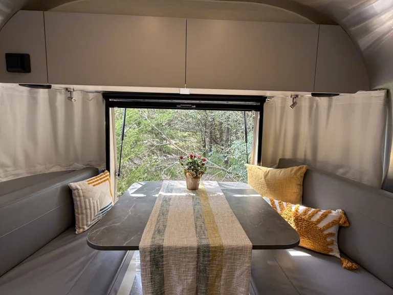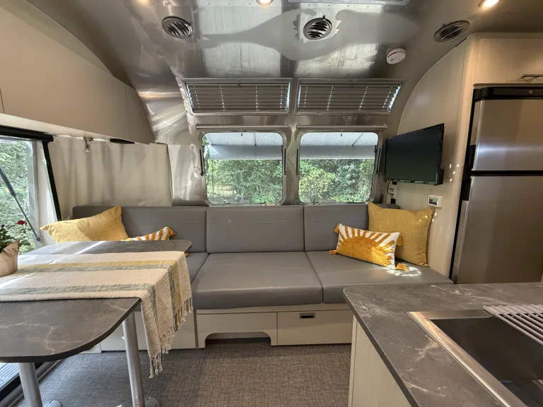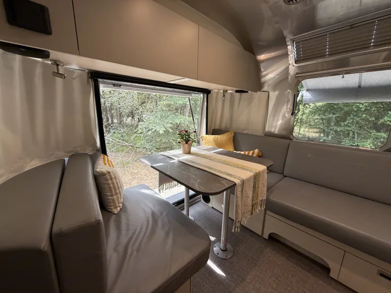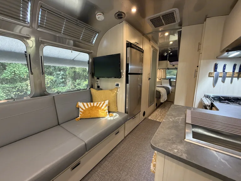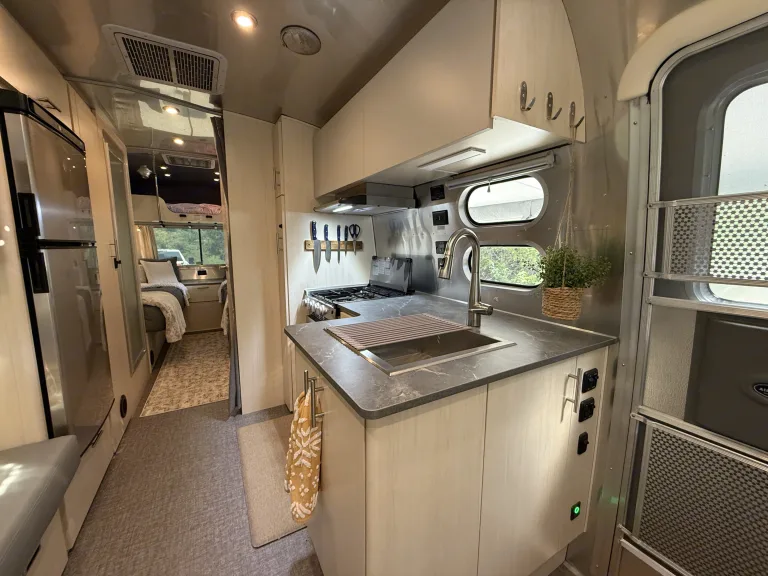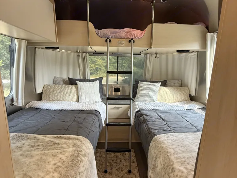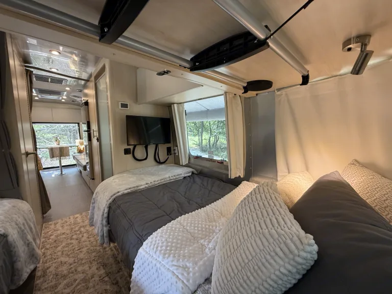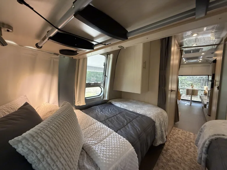 Meet Betty — our 2024 Airstream Flying Cloud 25FB Twin with Front Bunk. She’s bright, modern, and full of charm — the perfect mix of Airstream craftsmanship and family-friendly comfort.Please note: This is a delivery-only rental. Betty is not available for towing. We’ll deliver her directly to your campsite, set everything up, walk you through how she works, and pick her up when your trip is done. All you have to do is show up, relax, and enjoy your stay.Betty’s twin bed layout and front bunk make her ideal for families or a couple looking for extra space and flexibility. The rare rear hatch opens up the interior for natural light, fresh air, and stunning campsite views. Inside, you’ll find Airstream’s timeless Sunlit Maple cabinetry, Seattle Mist Ultraleather seating, and thoughtful design touches that make every stay feel like home.She’s equipped with dual GE air conditioners and Airstream’s QuietStream climate control, keeping you comfortable no matter the season. With her open layout, smart storage, and premium finishes, Betty makes camping feel effortless.Want to stay connected during your trip? Add the Starlink Internet Service upgrade to unlock Betty’s Smart TVs for easy streaming, enable fast WiFi calling, and connect unlimited devices at once. Perfect for working remotely, staying in touch, or relaxing with your favorite shows under the stars.Note: Starlink requires a clear, unobstructed view of the sky for optimal performance.And don’t forget to check out our add-on options — from campfire setups and outdoor kitchens to early arrival and late pickup — each designed to make your stay with Betty even more relaxing, convenient, and unforgettable.Betty has been garage-kept, meticulously maintained, and loved like family. Whether you’re thinking about buying an Airstream and want to test one out, or simply craving a stress-free escape, Betty is the perfect way to experience the Airstream lifestyle. The owner is happy to answer any questions and help you get the most out of your stay.She’s a true plug-and-play getaway — perfect for couples looking for a romantic, secluded glamping retreat, or families wanting to explore the great outdoors together without any setup or hassle.What's included• Betty comes fully stocked and ready for your stay, including:• Delivery & full setup at your campsite