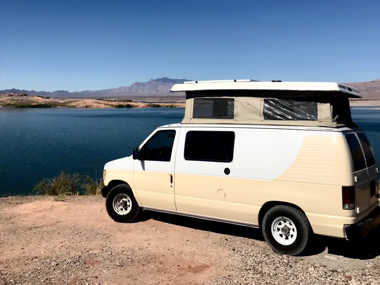 This is a classic Sportsmobile pop-top Ford Van with a custom, one-of-a-kind interior. I planned and built this rig specifically for a work/play trip, with room to spread out your mobile office. With numerous seating arrangements you can have a chill zone or a work zone or an adorable little bistro table setup.