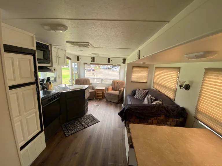 This roomy, comfortable, and easy to tow travel trailer is perfect for large family with kids, or a group of friends. Whether you are doing an off road weekend, a beach gateway, or going to the lake, you will be glad you choose this RV for your trip . It is slim and compact while towing but converts in to an amazing open space with its large living room slide out. This is truly a home away from home. Comes with 3 Beds; One is a master bedroom with its own entrance and comfortable queen memory foam bed, a dinette turning in to full size bed, and an electric air mattress if needed. It is equipped with a stove, refrigerator, oven, Central air conditioning, Television, entertainment center, Full bathroom with interior shower, outdoor shower, microwave, plenty of seating room with 2 Large armchairs, large comfy couch, and 4 seater dinette. All you need to take advantage of this beautiful trailer is a full size truck that is capable of towing up to 6000 lbs, with 725lbs hitch weight, and installed trailer breaks. We will provide tow hitch with weight distribution bars.