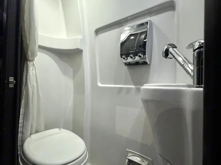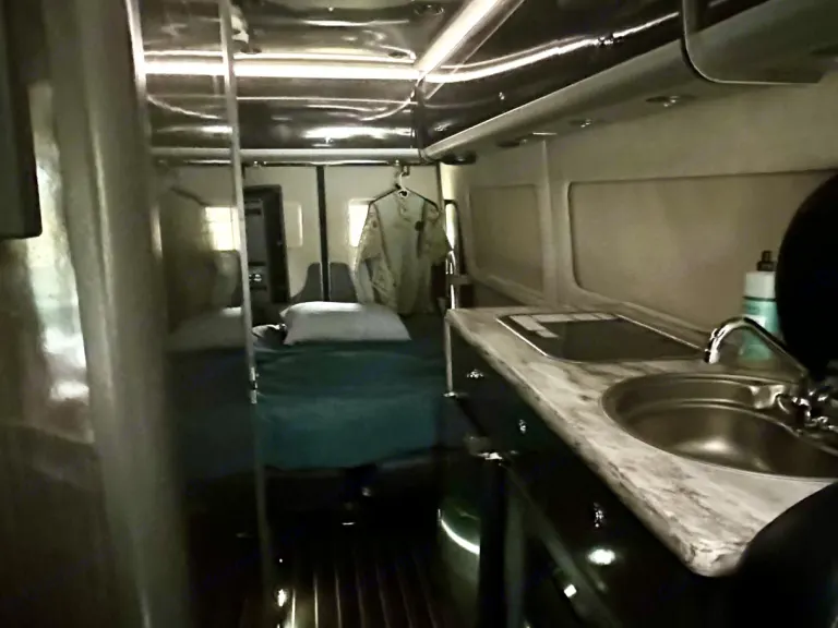 • Electronic sun shades for daytimeKitchen + Cooking• Two-burner propane stove