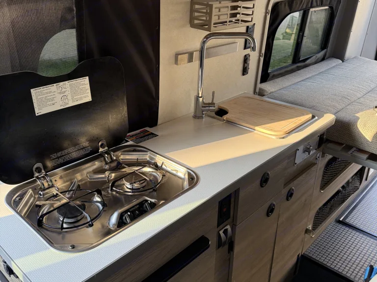 2023 Winnebago Solis 59PX with a 3.6L V6 engine, and a 3,500 lb tow package. It has a freshwater tank capacity of 20 gallons, a gray water tank capacity of 20 gallons, and a fuel capacity of 24 gallons. The Solis 59PX can sleep four people via a pop-top (full size) and near-Queen-size beds. With less than 10K miles on the odometer, this practically new RV is ready to hit the open road and explore new destinations.The vehicle has been lifted with stabilizers to allow for improved ground clearance and corning performance. Three power sources including an on-board gas generator (110V), solar (12V), and natural gas (heating).Inside, the Solis offers a spacious and well-appointed interior that provides all the comforts of home while on the road. The kitchen is equipped with a refrigerator, stove, sink, and ample storage space for all your cooking essentials. The bathroom is compact yet functional, featuring a shower, toilet, and sink but also easily converted to a closet for hanging clothes or shelving storage. An optional microwave can be stored in the bathroom area as well.An optional cooking package can be added that includes: cooking utensils, cleaning supplies, pots/pans/dishes, place setting for 4, and spices.What's included• Bedding for the bottom bed (near Queen size).