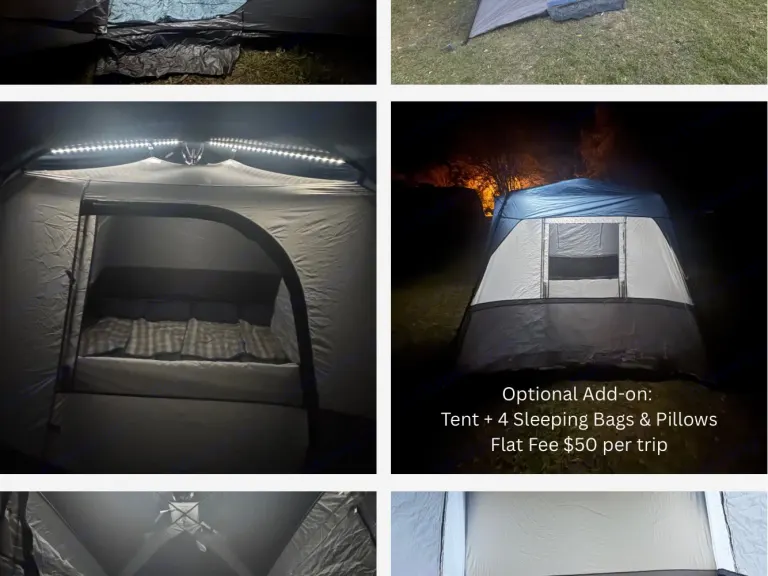 (With the Ready Set Package, you just show up. The beds are made, lights are hung, chairs and rugs are out. Everything is in its place. No need to even meet for a key — just enter the code and enjoy your vacation. Includes everything in the photos except tent and sleeping bags. That’s a separate add-on.)Extra Tent + 4 Sleeping Bags - $50 Flat Fee (per trip)