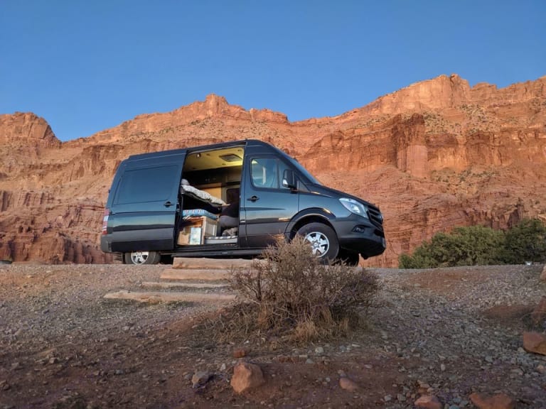 2016 Vanworks Camper Van built on the Mercedes-Benz Sprinter chassis. Featuring a queen-sized bed, outside shower, sink, toilet, propane stove, interior heater, and 2 bike rack. Winter tires In season. Tons of storage space for all of your fun time adventure gear! There are two internal bike mounts inside the toy hauler area under the bed as well.This rig is also jam-packed with high-end components. This Vanworks custom build has a furnace, lithium ion battery solar system and inverter for hours of power without a generator or hookup, powder coated metal cabinetry.This 144" short wheel base diesel van is a dream to drive, with all the bells and whistles. This van is perfect for your ultimate road trip designed by a former professional outdoor athlete. What's includedHigh-end audio system with subwoofer and surround sound. Dual back up cameras make driving the short wheel base Sprinter a breeze.Bed sheets, blankets, towels, tempurpedic pillows, insulated magnetic privacy shades for all windows, pour over coffee maker, electric hot water kettle, cooking pan, pot holder, knives, Pyrex measuring cup, coffee mugs, cups, plates, utensils, collapsable bowl, paper towels, cutting board, soap, hand sanitizer. Two camping chairs included. Portable toilet also included and pre-set up adequate for about four days use.For cyclist or outdoor athletes, I can include any tough to travel with piece of equipment including bike pump etc. A bike workstand is on the bike rack.Available for rent: