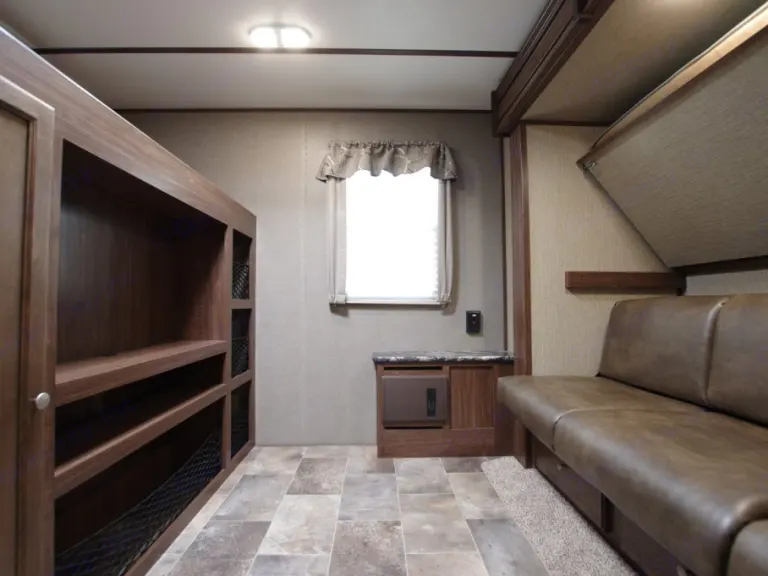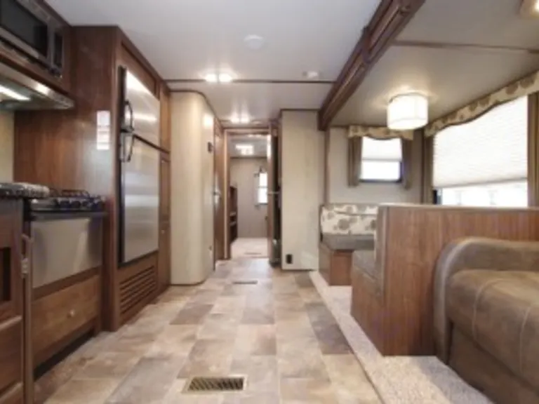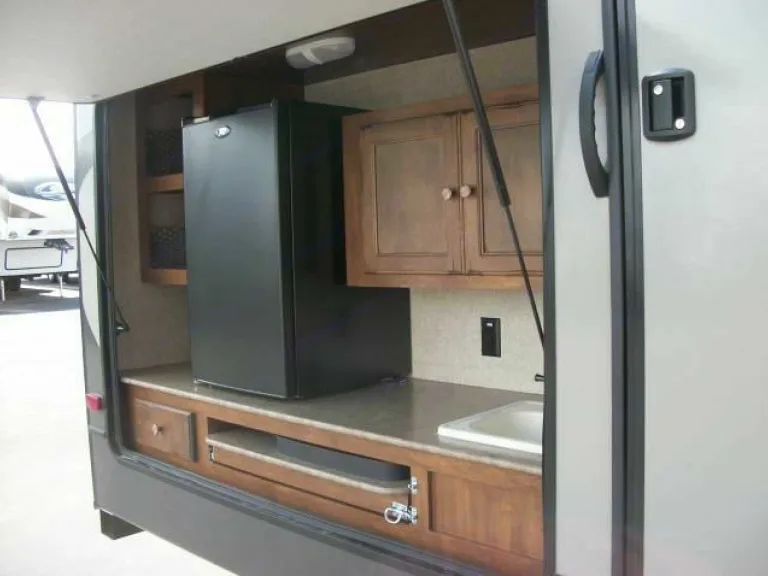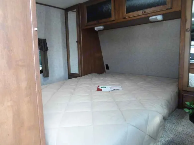 This trailer is an awesome trailer! From outside in, it is perfect for campers who want it all with comfort and style. Starting on the outside, it has an outdoor kitchen that includes a fridge, sink, and gas grill, with extra storage (no more running in and out). The trailer comes with a BBQ and attaches to the bumper on a special rack. Built for ease in set up: two 30 lb tanks of propane; electric jacks; and power tongue jack. No more cranking. Also:• 12 foot power awning with speakers and lights. Inside there are many desirable features and upgrades, including: •a large grab handle plus a friction hinge door; • a 3 burner gas stove, microwave, and 7 cf fridge (propane or electric); •a pantry and overhead cabinets throughout; •loveseat/pullout bed and a dinette (convertible for sleeping) in the slideout;•32” LCD tv with blue-tooth capable sound bar to play from your devices;•TV is wired for satellite, cable, and has a antenna with booster;•Lots of bedroom storage - two small closets, cupboards above the bed and under-bed storage; •All LED lighting with ground fault protection;The trailer is a 31BH, so the bathroom is in the rear. It has a porcelain toilet, shower, linen closet, medicine cabinet with mirror over the sink, and large storage cabinets. The trailer is insulated for below freezing temperatures and has a furnace so you can camp well into fall. It is also air conditioned for those hot summer days. All interior fabrics are in great shape. The tires have low mileage and are in great shape –no rot. It was recently inspected, it passed inspection with no issues.Carrying Capacity 1805
