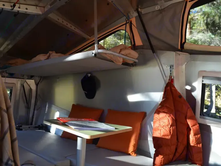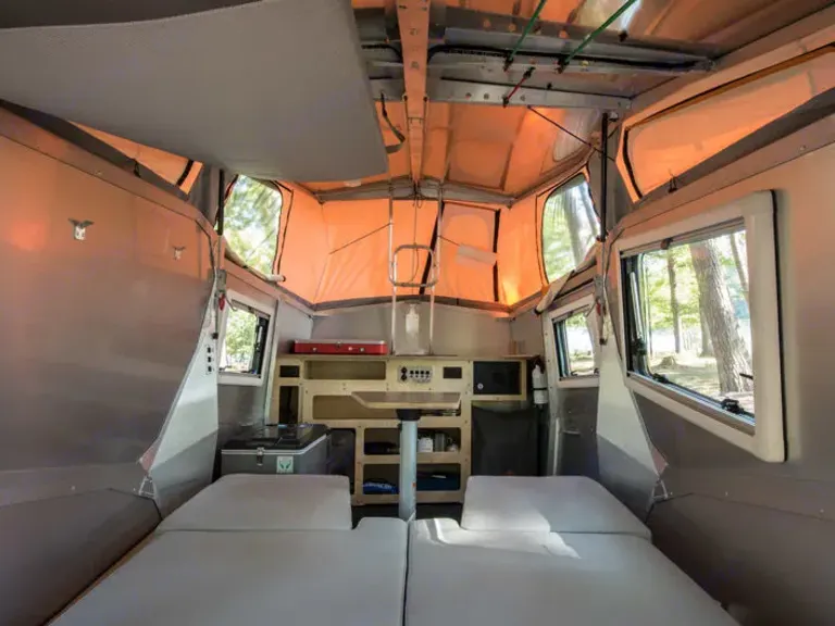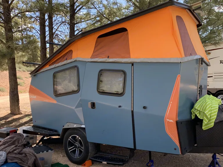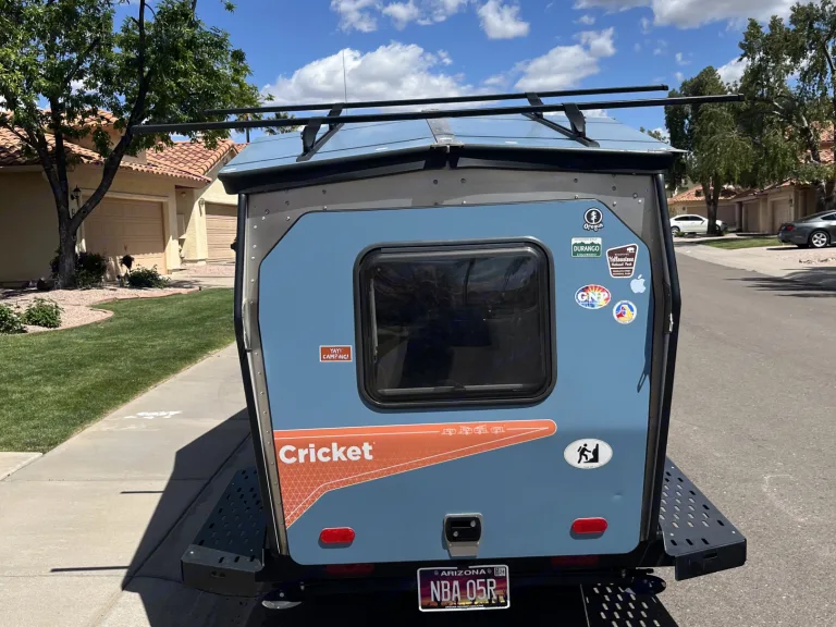 Easy to TOW & Lightweight. The Cricket is stylish, functional and so much fun. The roof pops up for those 6 ft tall. The top waterproof canvas allows for lots of fresh air flow and views of nature but also keeps the rain out. Inside is a queen size sleeping area that converts to indoor seating and table. 1 bunk is available for a child less than 100 lbs. Inside Kitchenette with sink and portable pull out Primus 2-burner stovetop and an Engel Freezer/Frig. You can dry camp with the Cricket, or hook up at an RV site with access to power and water. LED lighting both inside and out. Back hatch opens to great sleeping views and makes an instant covered area.Recommendations• Estes Park