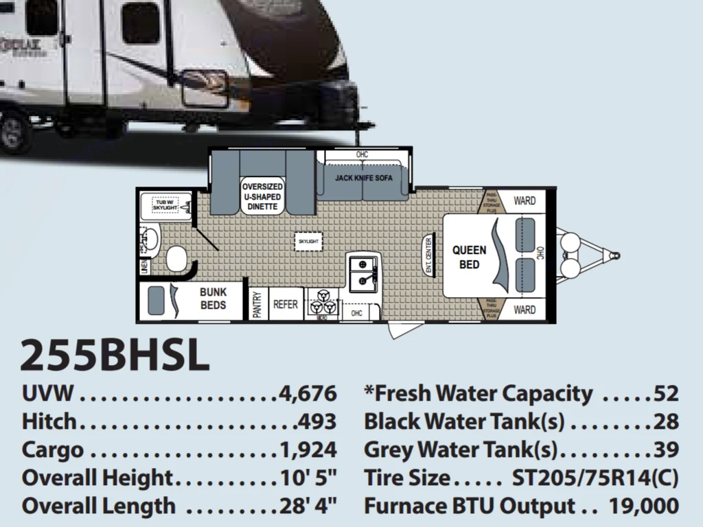 Spacious & Comfortable with real Queen mattress from Original Mattress Factory.Power awning extends & retracts in a snap Added drawers for storing clothes or food out of the way.