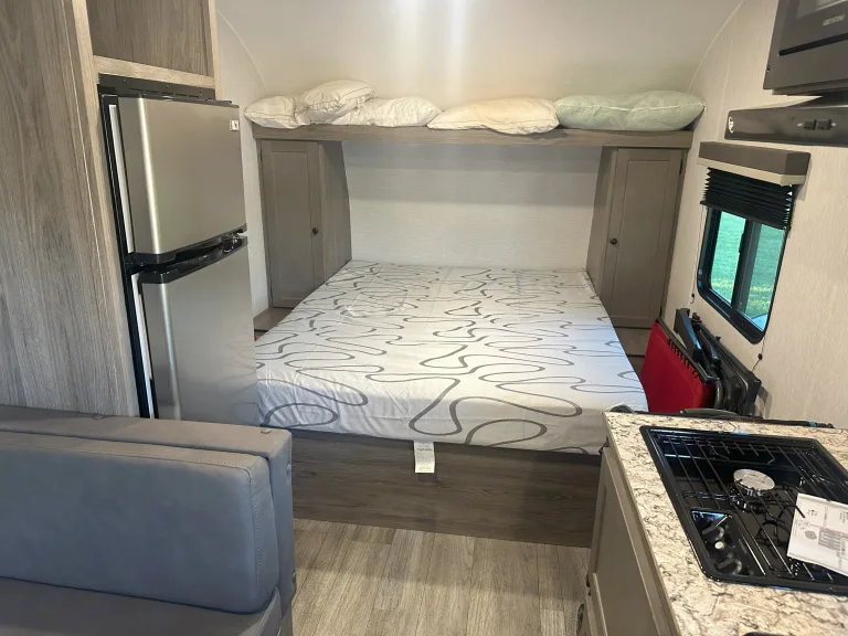 Escape the ordinary and embrace adventure with the Sunset Park RV — a cozy, easy-to-tow getaway perfect for couples or solo travelers! This compact yet comfortable camper sleeps up to 3 and includes all the essentials for a smooth, stress-free trip. Enjoy the convenience of a private bathroom with shower, toilet, and hot water, and cook your favorite meals in the well-equipped kitchen featuring a stove/range, microwave, refrigerator, and sink. Stay comfortable in any season with air conditioning and heating, and enjoy simple setup with water and electric hookups ready to go. Relax outdoors under the awning, and keep your gear organized with extra storage for all your travel essentials. Whether you’re exploring the woods, heading to the beach, or chasing sunsets down the highway, the Sunset Park RV makes every journey feel like home.
