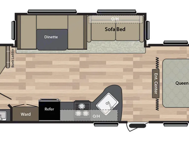 Our camper is beyond spacious. The kids love our bunk house and my mother stays with us on the pull out couch and claims it is more comfortable than her own bed. Our camper sleeps 9 comfortably and everyone has plenty of space. It is an easy haul and set-up, I have set it up by myself in less than 30 minutes. The slide out adds even more space and two doors allows for easy cleaning of the kids through the bathroom door via the outside shower!