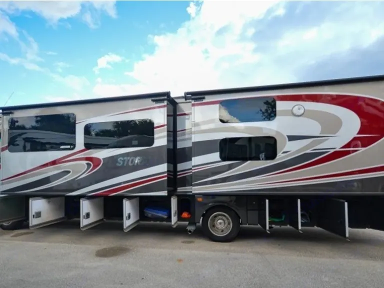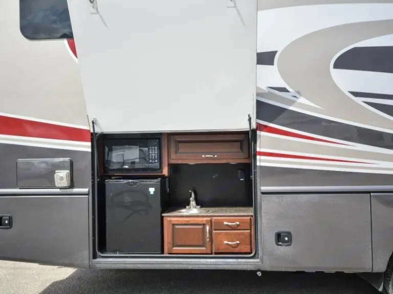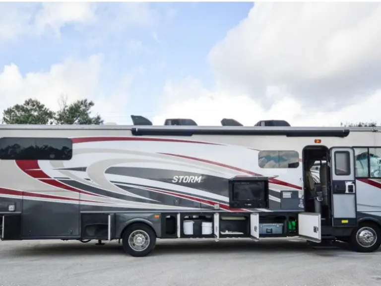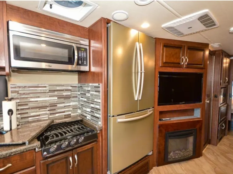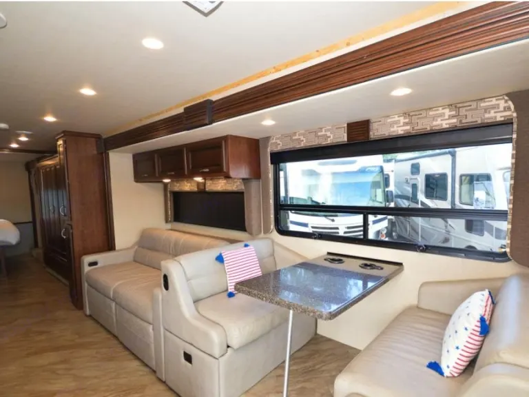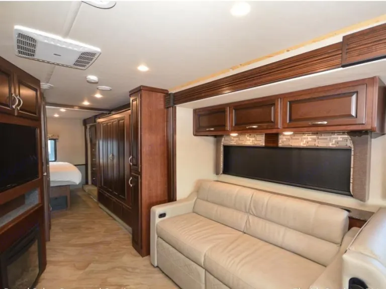 Ready for a unforgettable vacation? Let Sancho be your ultimate camping accommodation. You won't even realize you're in an RV after spending time in this 36' beauty. All you need are your personal items!You'll snooze away and won't want to get up from your fully private master suite, fully equipped with a king size bed, TV and wardrobe which offers plenty of storage. The bunk area is another great place, especially for the kiddos or extra guest as it comes with its own separate TV area for full comfort. This area closes off with doors from the rest of the RV, providing quiet space for early bed goers. The living area provides a queen pull out couch to which sleeps two with an additional double sleeping accommodation in the dining area. Don't forget about the drop down queen bed above the cab area! This queen bed is the perfect add on for your family/friends.This beautiful motorhome features 2 slides which provide lots of space featuring stainless steel appliances, full residential refrigerator for longer trips, a fireplace, a large pantry, 3 burner gas stove, large convection microwave, automatic leveling jacks, back up camera, 2 A/C units, outdoor TV, outdoor kitchen, outdoor awning, outdoor shower and more...Included in rental - silverware, pots and pans, plastic plates, cups, bowls, coffee cups, Ninja blender and cups, Tupperware, toaster, many kitchen utensils as well as a Keurig coffee maker. We provide dish soap as well as interior cleaning products, broom and dust pan, swiffers and interior garbage can with bags. For outdoor use you will have access lawn chairs, outdoor mat, grill and table. Most importantly, you can be reassured to receive Sancho exceptionally clean with fresh linens, blankets and towels for your convenience. *Pillows not included.Things to know: