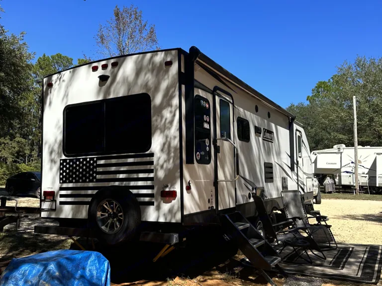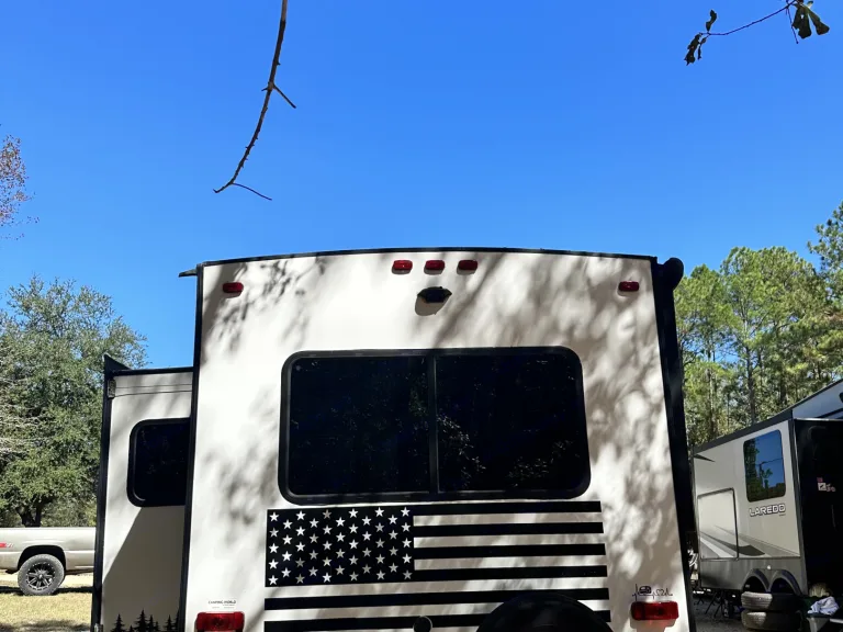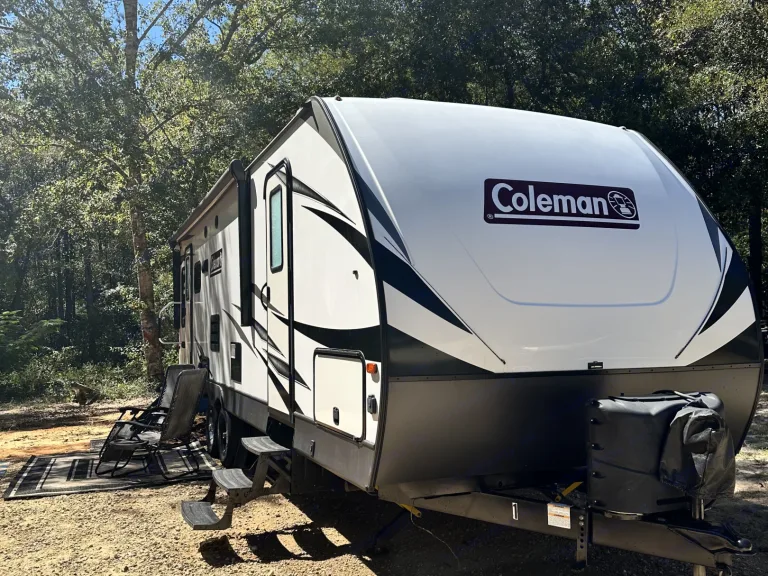Our 31ft Coleman travel trailer has 1 large slide out with a couch and dinette table. In the bedroom you will find a true queen size bed with storage space above and below the bed and closets on either side. In the main living space, u will find a 32 in tv with Roku. With tons of storage hidden behind the tv. the couch will fold out into a bed and the dinette table can also be set up as a bed. In the kitchen space you will find everything you need to stay in and eat. Whether you want to cook in the microwave or perhaps the oven you will find what you need to make a home cooked meal you can enjoy. The bathroom is equipped with a shower, sink and toilet. We deliver and set up up for you.What's includedIncluded with your rental: Fresh linens, pillows, pots and pans, camping chairs, RecommendationsThere are 2 state parks in this area.Historic Blakeley State Park
