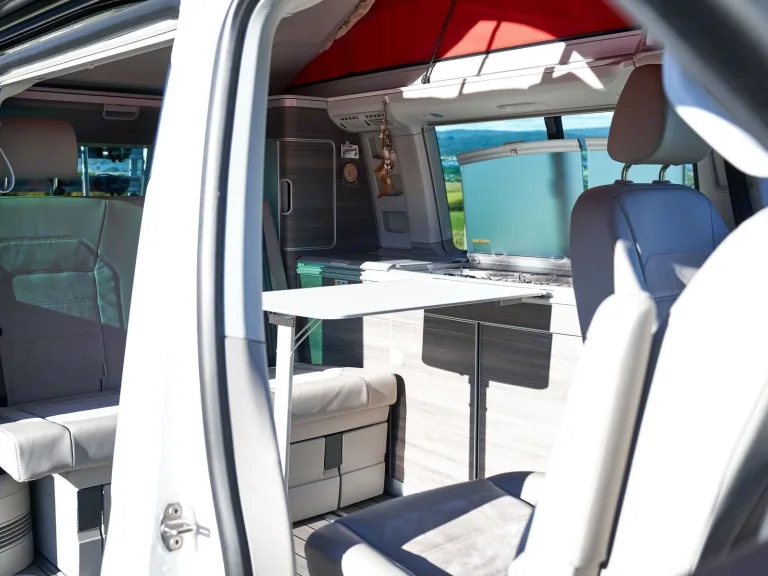 Son aménagement, de part sa richesse, sa qualité de fabrication, et son ingéniosité, en font une véritable petite maison roulante... se conduisant aussi facilement qu'une voiture (et sans payer plus aux péages grâce à sa hauteur inférieure à 2 mètres). Conçu pour accueillir jusqu'à 4 personnes, le Volkswagen California est le compagnon idéal de vos roadtrip à deux ou en famille, avec un véhicule très fonctionnel et optimal question rangements !