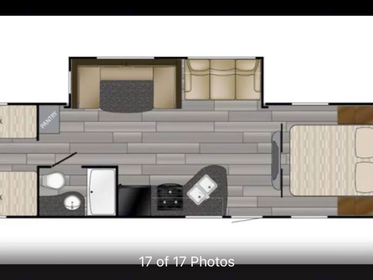 This travel trailer is in excellent, like new condition. It has a queen bedroom up from (with two sliding doors for privacy) and three bunks in the rear bedroom with a dining table underneath one bunk that can fold into a fourth bunk bed (this room also has a sliding door for privacy). There is a jack-knife sofa that can fold out into a double bed (very comfortable with fold-down center console for drinks and charging ports). And there is a booth dinette for wrap around seating. With the table being completely removable, this can also function as a second couch. The dinette can also fold down into another double bed. Other normal amenities are fridge/freezer, 3-burner stove, oven, microwave, outdoor gas grill, 2 mounted TVs, 5 camping chairs, outdoor shower, and a full bathroom. Your family will love the space and conveniences of the Prowler.