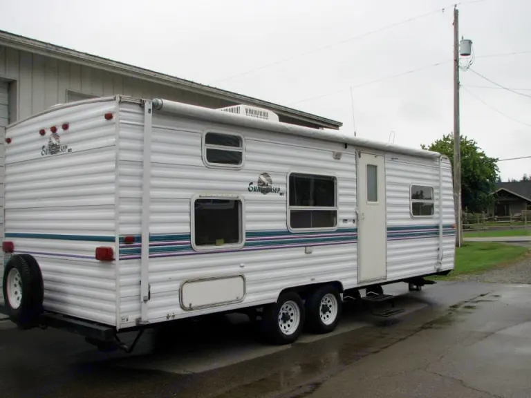 1999 Kit Trailer. Sleeps 6. AC. 3 TV hook ups. Queen master bed, 2 bunks, fold out couch bed & table bed. Large fridge/freezer. Stove, oven & microwave. Tub/shower. Good counter space in bathroom. Lots of storage: under bunk, under dining benches, above master bed, Under master bed, side of master, large cupboard btw fridge and bathroom. Large awning. Outside shower. 26’.Perfect travel trailer for friends and family to experience the Pacific Northwest.If you have special needs/requests about anything, including pricing, please let us know. We can usually work something out.