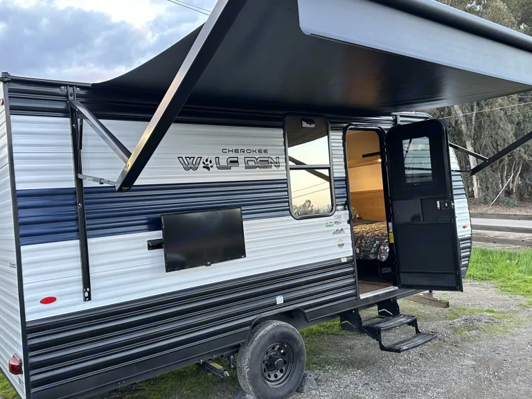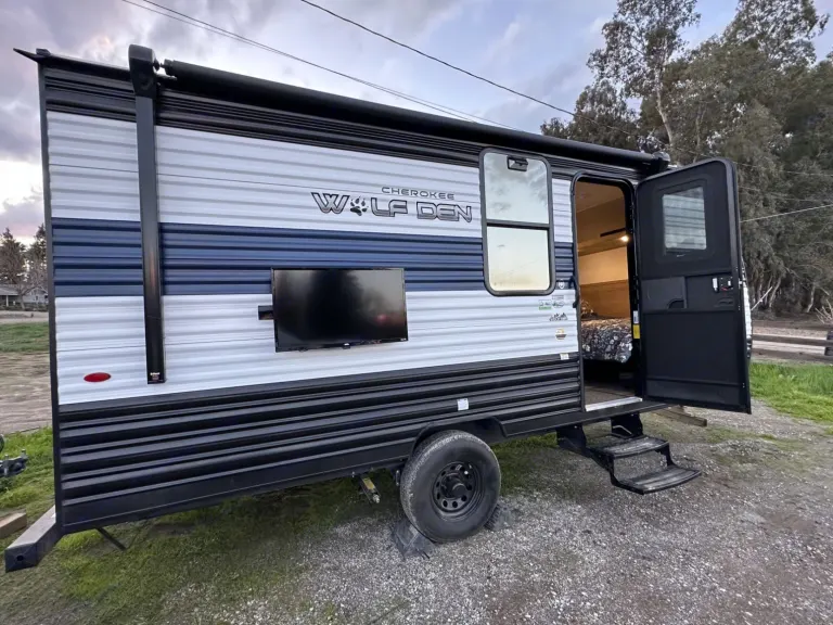 Hello I Have a 2024 Forest River Cheerokee Wolf Den 16 EV it’s light weight and can be towed with almost any car that has a tow hitch