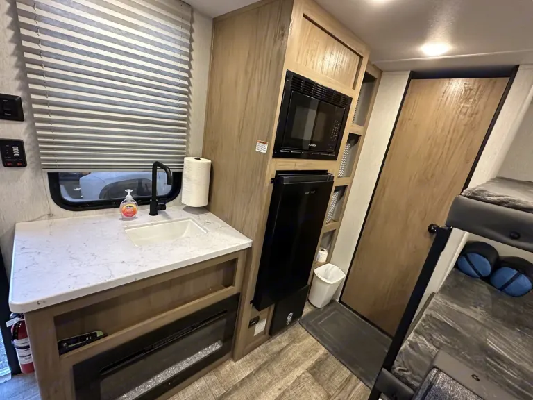 *Tv can be moved from the inside to the outside**This Unit IS Fully Electric IT Does NOT Have Propane Heater OR Propane Water Heater AND Will Need A Power Source(Shore Power OR Generator) TO RUN ALL THE Appliances.-Delivery and Setup provided for $4.50 a mile and $100 setup fee-Delivery Fees are only Charged one way.