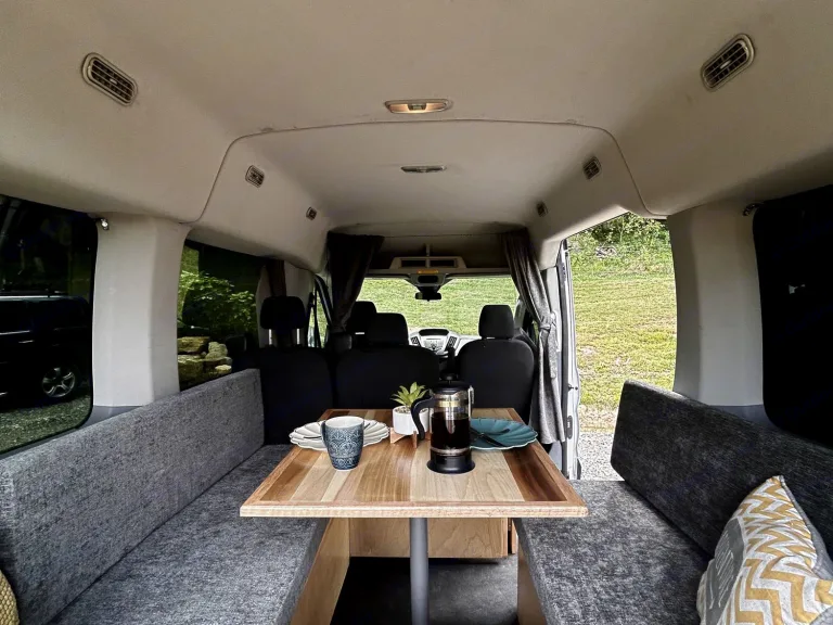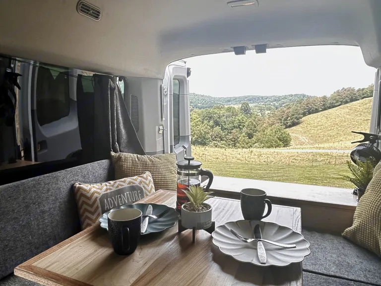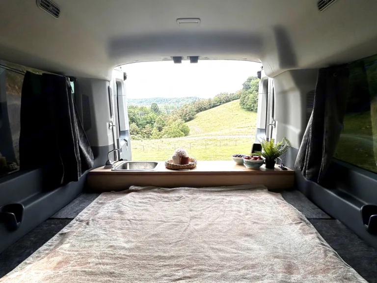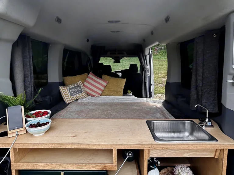 The van handles smoothly and comfortable for long distances, the bed was comfy and easy to set up, the storage was spacious and accessible and felt perfect for any camping needs or experience.