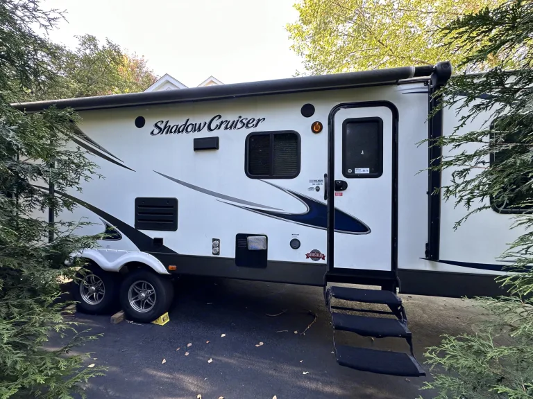 Great weekend getaway. Our Shadow Cruiser has comfortable sleeping for 6 (queen size master, 4 bunks in the rear). Two doors allow for easy access (rear door with direct bathroom access). Outdoor kitchen includes mini fridge and propane stovetop.Camper comes with basic cooking utensils - propane grill for cooking, pots and pans, electric skillet, and crock pot.