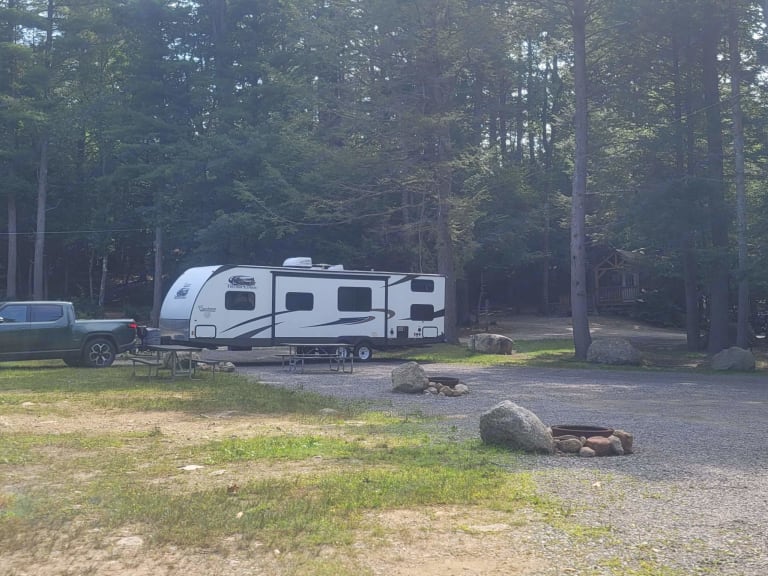 Delivery Only: Bring your family vacations or friends to a whole new level of outdoor adventure! With its spacious and versatile layout, this travel trailer is ideal for large families and groups, accommodating up to 8-10 adventurers. .Step inside and be greeted by a warm and inviting interior with a large power slide that provides a living space that is spacious for comfort and relaxation. The front bedroom of this home away from home is the full length queen bed, where you can sink into comfort after a day of exploring the great outdoors from either side without having to crawl over anyone!. In the bunk room, you'll find four cozy beds eagerly awaiting little adventurers, providing a private and delightful space for them to call their own.The ingenious design of this travel trailer seamlessly blends functionality and style, ensuring family memories are made in comfort and convenience. The kitchen area is equipped with a gas oven and stove top, large refrigerator with separate freezer and plenty of cookware and dishes, perfect for whipping up your favorite meals while enjoying the beauty of nature. The built-in stereo can entertain you or turn on the TV and hook up your Hdmi device to watch your favorite shows if your vacation needs some time in the AC.Pets welcome, but please keep them off the furniture.The trailer is fully stocked with linens, dishes, and cookware. Bring your favorite foods and toiletries to relax in nature!This trailer is best enjoyed in parks with full hookups and three nights are the minimum rental. The delivery distance is up to 75 miles from Manchester, NH which covers most of the White Mountains.