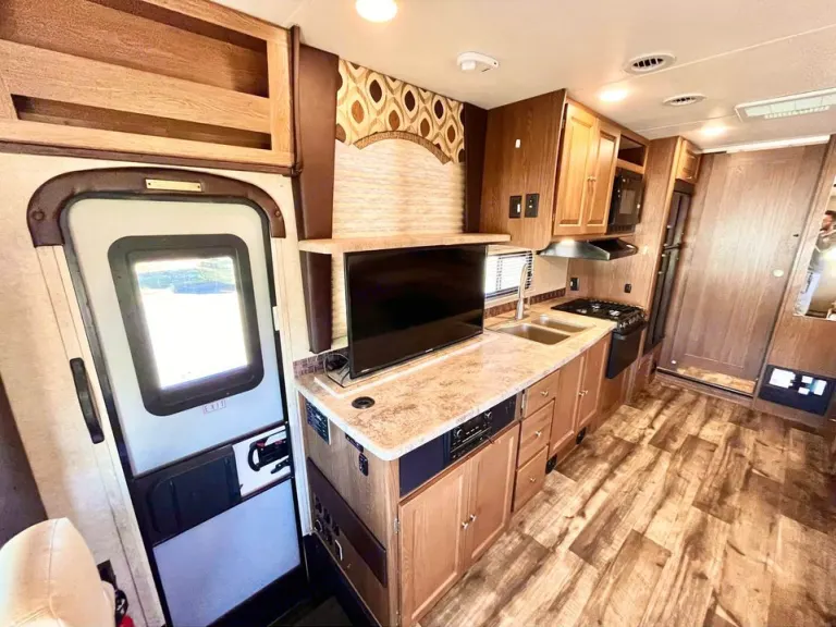 Spacious Living Area: The Coachmen Leprechaun 319MB boasts a thoughtfully designed interior with ample space for relaxation and entertainment. Kick back on the cozy sofa or dinette, perfect for family gatherings or a quiet night in.Fully Equipped Kitchen: Embrace your inner chef in the fully equipped kitchen. The modern appliances and generous counter space make meal preparation a breeze. Create delicious, home-cooked meals on the road and savor the convenience of having everything you need at your fingertips.Private Sleeping Quarters: After a day of exploration, retreat to the private bedroom featuring a comfortable queen-sized bed. With dedicated sleeping spaces, everyone can enjoy a restful night's sleep, ensuring you wake up refreshed and ready for a new adventure.Bathroom Facilities: The onboard bathroom offers the convenience of a shower, toilet, and sink, providing a private oasis for your hygiene needs. Say goodbye to campground facilities and enjoy the comfort and privacy of your personal space.Entertainment Options: Stay entertained during your journey with the RV's multimedia options. Whether you prefer watching movies on the flat-screen TV or listening to your favorite tunes on the audio system, there's something for everyone to enjoy.Outdoor Awning: Extend your living space to the great outdoors with the easy-to-use outdoor awning. Create a shaded area to relax, dine, or simply take in the breathtaking views around you.Easy Maneuverability: With a reliable Ford chassis and V10 engine, the Coachmen Leprechaun 319MB offers a smooth and comfortable ride. Navigating through diverse landscapes and parking at your favorite destinations is a stress-free experience.Why Choose Our RV:Exceptional Comfort: Our RV is designed with your comfort in mind, providing a home-like atmosphere wherever your journey takes you.Reliable Performance: Built on a sturdy chassis and featuring a powerful engine, our Coachmen Leprechaun ensures a reliable and smooth ride, allowing you to focus on the joy of travel.Memorable Experiences: Create lasting memories with friends and family as you explore new destinations and enjoy the freedom of the open road.Embark on your next adventure with confidence and style in our 2017 Coachmen Leprechaun 319MB. Book now and let the road be your guide!