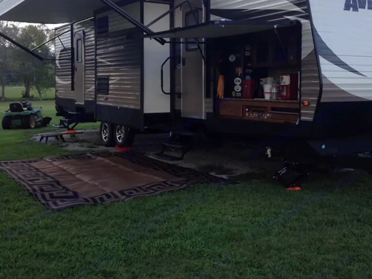 This 2015 Avenger 32FBI sleeps 8 has a bunkroom, Queen Bedroom, and a fold out Couch bed. Also enjoy cooking inside with a full kitchen or in the outdoor kitchen. Full bathroom and complete self-contained 3+season travel trailer. The 32FBI has 3 slideouts, 1 in the back bedroom, 1 living room, and 1 is the inside kitchen. With this many slides the inside room makes this camper feel like a small house. The camper is wired for 50amp, however is fully functional with a 30amp hookup and we provide the adapter. We have traveled across the country in this camper and it continues to serve our family well. The outdoor kitchen includes a dorm fridge making it easy to carry and cool extra drinks without buying ice and carrying coolers to the campground. We do offer setup at no charge at the listed local campgrounds and recommend at least a 3/4 ton truck to pull this camper as fully loaded this camper can weigh just north of 10,000lbs.