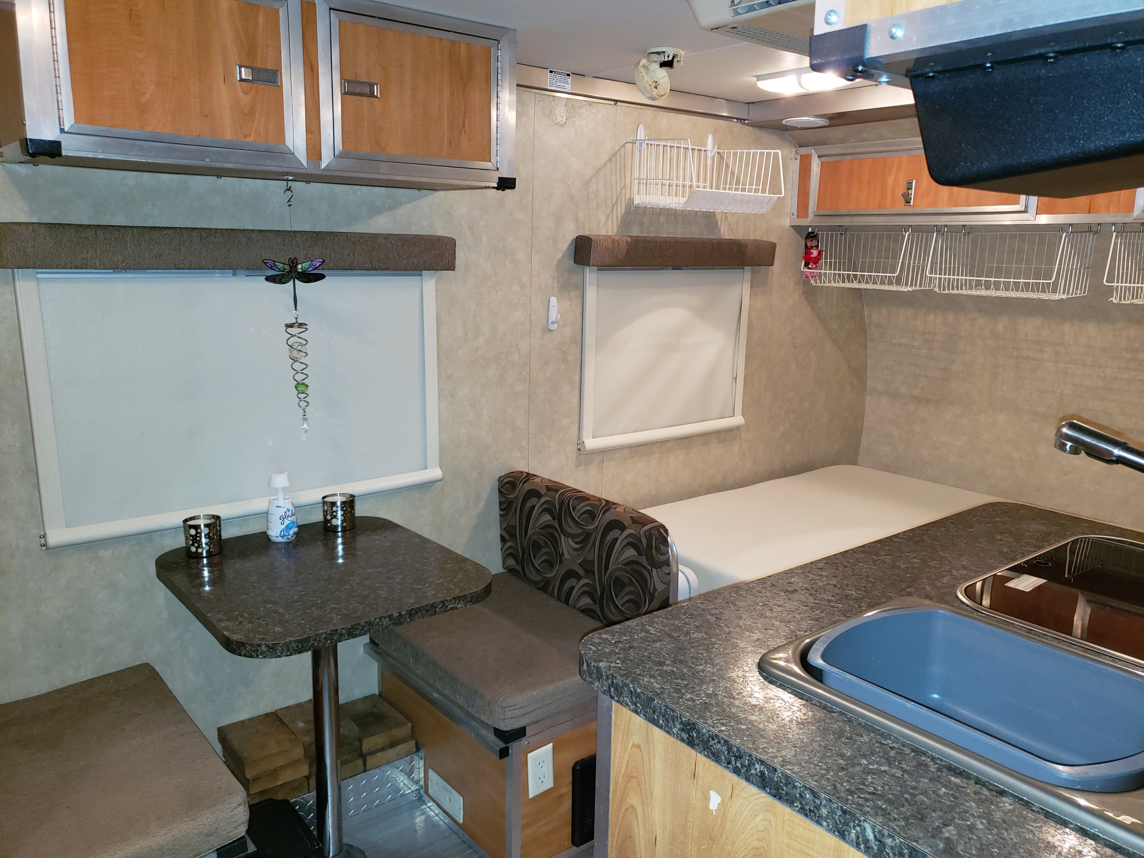 Easy tow with midsize vehicles.Stocked with: Dishes, utensils, cups, pots, coffee pot, toaster and electric burner.
