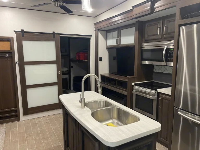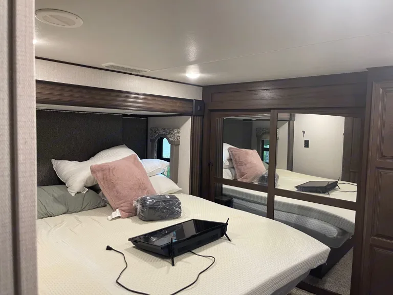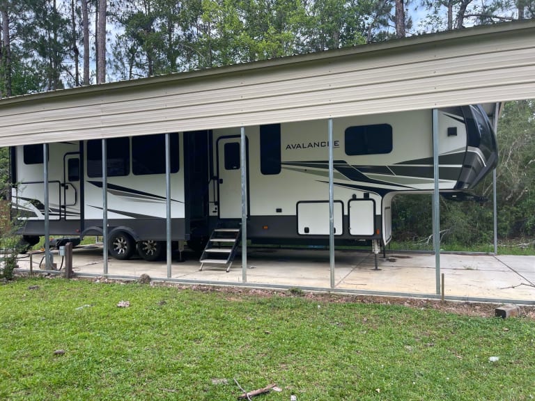 Looking to get away. Rent this beautiful 5th wheel with plenty of space to spread out. It has a king size bed in the master with attached full bath and washer and dryer, 2 pullout sofa beds and 4 bunk beds with attached half bath.