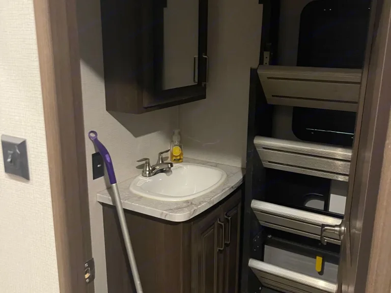 The half bath is accessible from inside or outside. It has 2 awnings for the perfect days to relax outside. It has 2 AC units to keep the interior temp comfortable all year long as well as an electric fireplace for those cold winter nights.What's includedFresh linens, outdoor camp chairs, Gas BBQ pit, Pots Pans and Utensils.Other things to notePlease bring rv friendly Toilet paper.