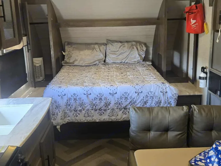 Experience the great outdoors with all the comforts of home in my 2020 Forest River Wildwood X-Lite! This 19Dbxl travel trailer is designed for adventure, offering a spacious and functional floorplan that’s perfect for families, couples, or solo travelers looking for a getaway.Features & Amenities:Sleeps up to 6 (5 comfortably), with a cozy queen bed, roomy bunk beds, and convertible dinetteFully equipped kitchen with a microwave, stove, oven, and fridge—perfect for whipping up delicious mealsSpacious bathroom with a shower and plenty of storageEntertainment center with a TV, radio, and Bluetooth connectivity to keep the good vibes goingLightweight and easy to tow—ideal for both seasoned travelers and first-time RVers. Ball size 2 5/16”Why You’ll Love It: Whether you're heading to the mountains, beach, or a quiet lakeside retreat, this Wildwood X-Lite has everything you need for a memorable trip. It's cozy, clean, and ready for adventure—all you have to do is pack your bags and hit the road!Book now and start planning your next escape!What's included•In storage area - hammer, axe, tent, air mattress, 1 lawn chair, door mats, hot dog skewers, extension cord, string of lights, wheel chocks, extra waste hose extension, grill kit