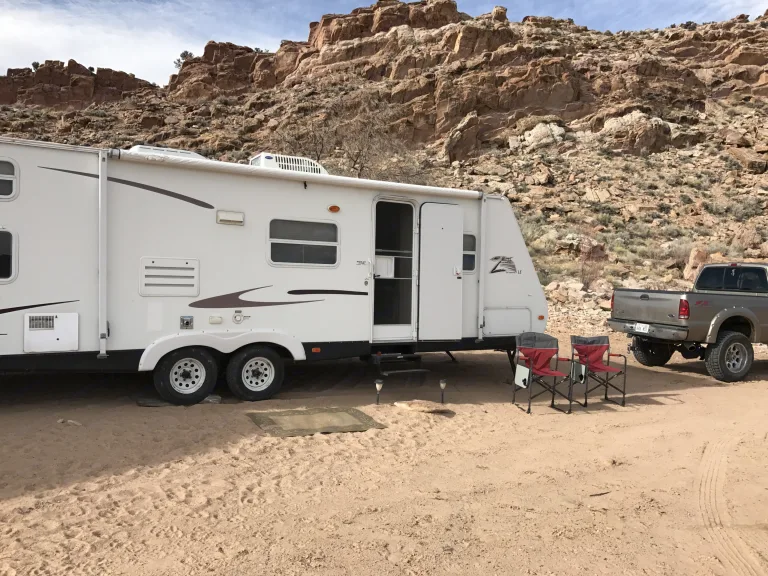 This camp trailer is located at Flaming Gorge in Manila Utah.