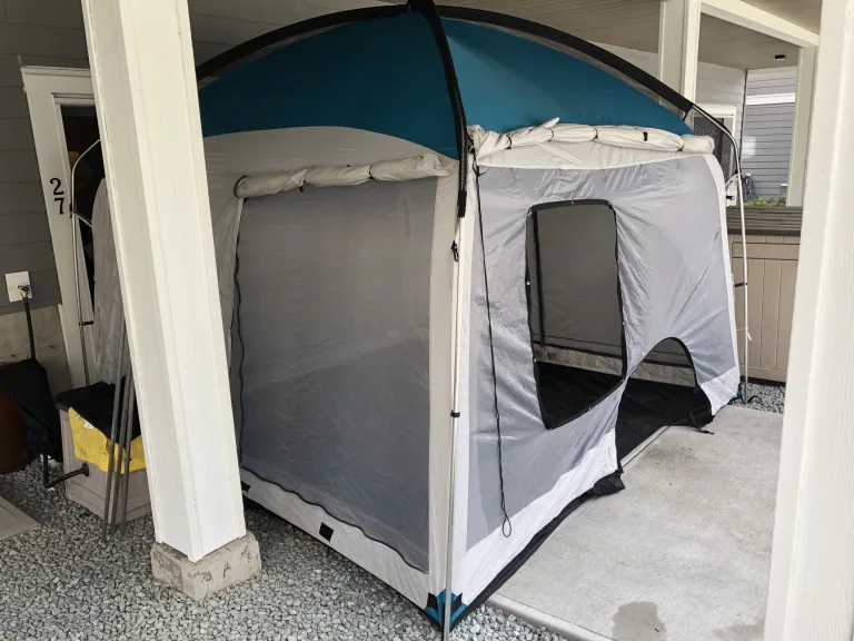 Super clean like new little guy 5 wide trailer with upgraded king coil queen mattress, tow with any vehicle , sleep like a king. Tent attaches to trailer for a perfect comfortable set up. Need two inch ball and 4 prong flat electrical. You won’t feel this trailer behind your car it is made out of aluminum. Will use 1 litre of extra gas per 100 kilometres.
