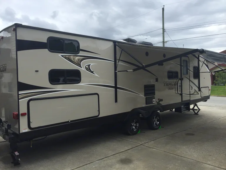 Large, spacious, immaculate travel trailer with bunk room for the kids, outside kitchen, outside shower, large awning and so much more!