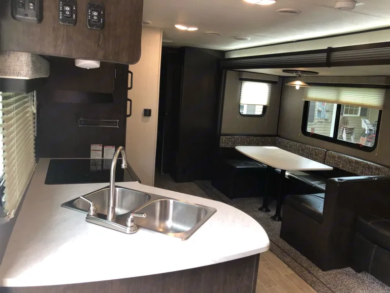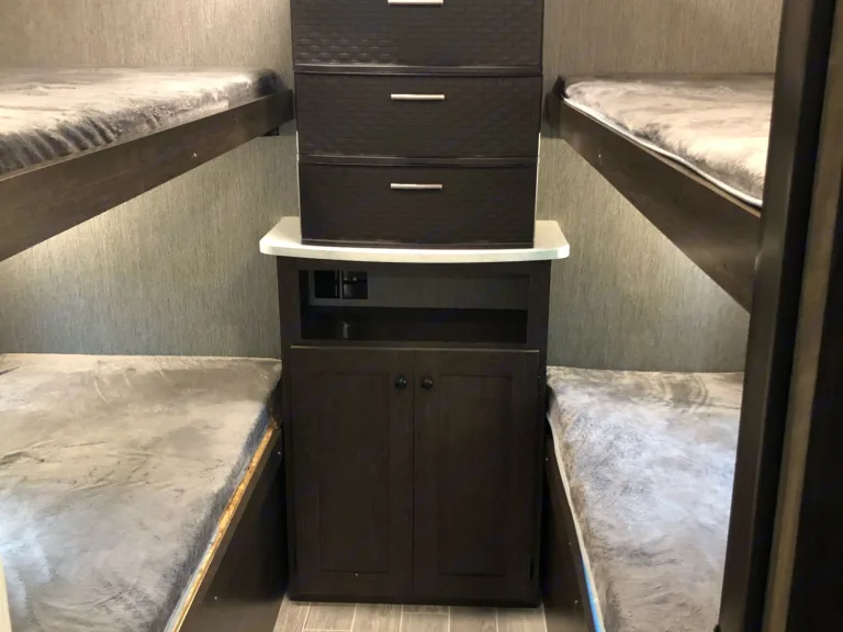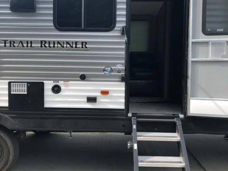 Brand new Heartland Trailrunner. Has a queen master bedroom (with sliding doors for privacy) and 4 rear bunks (also has rear sliding door). Comfortably sleeps 6-9 people. Table can fold down to a full size bed and couch folds down to a bed.Gross weight 9,000 lbs