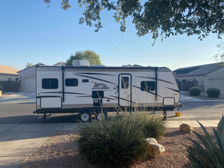 Beautifully kept Travel Trailer! Comes equipped with comforts such as upgraded pillow top Queen bed, full shower in bathroom with plenty of wiggle room! Sleep 2 on the Queen with 2 additional pullouts that can sleep 1-2 people on each. If you like to snuggle this is the place! Heat works amazing! AC works great but does need a power outlet for use or a Generator which is available with the Trailer! Comes with 3 propane tanks, 2 batteries, propane fire pit, DVD Player and much more! Just grab some groceries, utensils, and go! Has rear camera, lock ball, and weight distribution hitches. This is worth every penny!