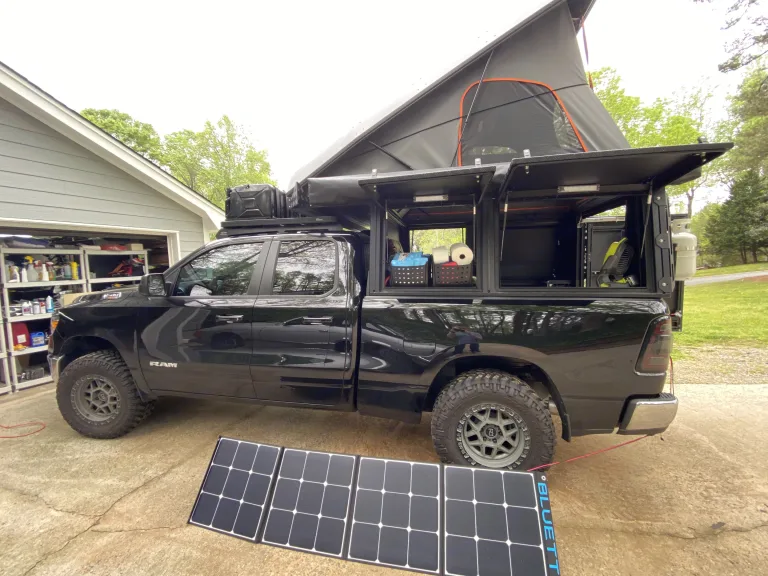 20-23 MPGs! 2021 Ram 1500 Eco Diesel with Alu Cab canopy camper. Exped Duo air mattress. 200 watts of solar. 2000 watt inverter. LED lighting. Iceco 12v refrigerator. Outdoor shower. Hot water heater. What's includedBYOB - bring your own sleeping bags. Will provide kitchen utensils, seating, 32” high def tv. RecommendationsPerfect for the North GA mountains or state parks. Great for tailgaters and tight parking spaces. Other things to noteNo smoking. Diesel fuel only!