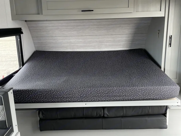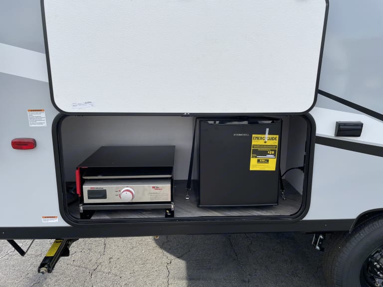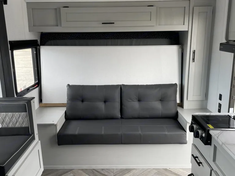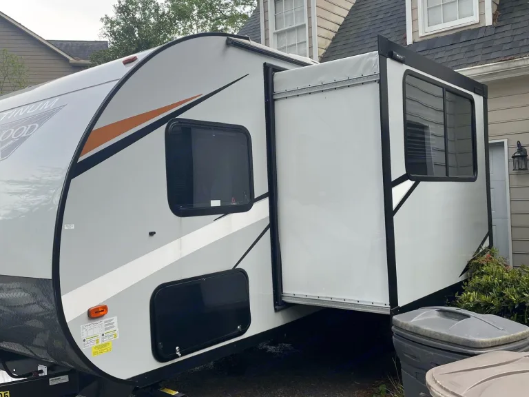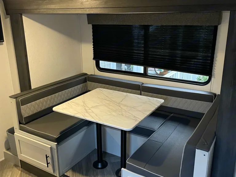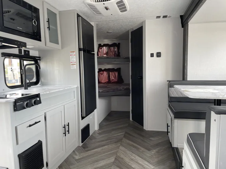 When you walk in to the right is a couch with a Murphy pull down bed with storage to the right and top of couch/Murphy bed. This is a spacious camper with full size bunks, murphy queen bed, and full size dining/bed, and one slide out! Great for families!! It also has a large refrigerator and freezer, stove top, sink, and cabinets. There is storage space under the the dining room benches, and also under the bunks! What's includedKeurig, spices, towels, toilet paper, paper towels, bedding!RecommendationsI have taken my rig to Disney World's fort wilderness and some other locations in Florida and in Georgia on lake Alatoona. Other things to noteNO SMOKING, No jumping on beds and no sitting on the dining room table! No hanging items on the awning and be sure it is not out during wind or rain to keep it in the best shape. The black and grey tank must be emptied before returning and the camper must be cleaned and sent back as nice as it was when it was rented. If you have animals please be sure to put a blanket or towel down so they don't rip the fabric on seats and beds!
