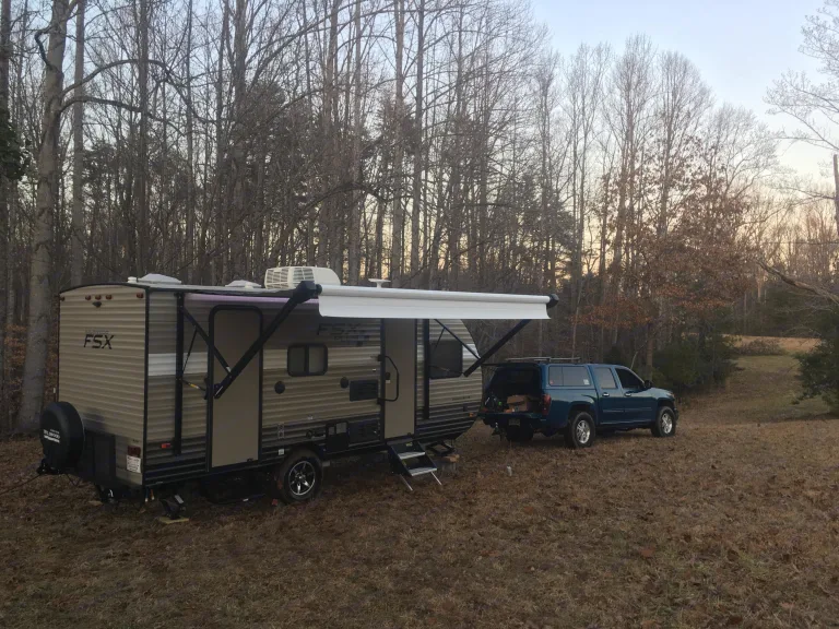 - Delivery $4.00 per mile. $225 minimum charge.The bathroom has its own door to the outside.We replaced the original bed with a 8" memory foam bed. Very comfy.No smoking. We will add a $250 cleaning fee if you choose to smoke.You will need a class 3 hitch and a 7 pin power connector.What's includedWe put covers on our mattresses however please plan to bring linens.