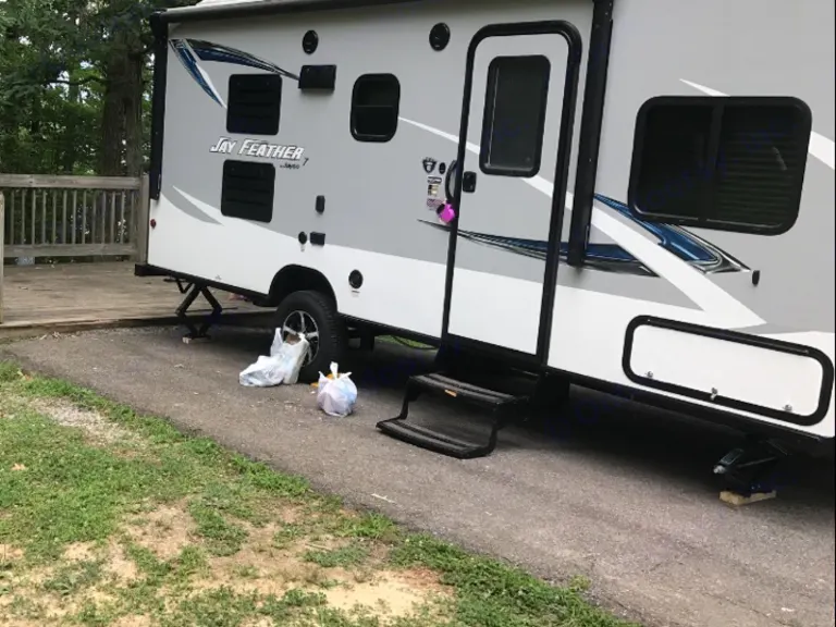 This camper is easy to pull. It has a single axle which also makes it easier to get into the tight camp spots. Bedding consist of a queen size bed, two bunk beds, and a table that makes into a bed for a child. Silverware, some cooking utensils, someToilet paper, pot, pan, dish towels and some black water tank deodorant is provided at the start of the trip. Refrigerator runs on LP gas or electric and is a full size camper refrigerator with a smaller freezer. Hot water tank also will run on electric and/ or LPGas. Equipped with powered awning, 2bike bicycle rack, a rear utility rack ( limit 150lbs), and indoor/outdoor speakers. Towing hitch and weight distribution bars with built in sway control provided.