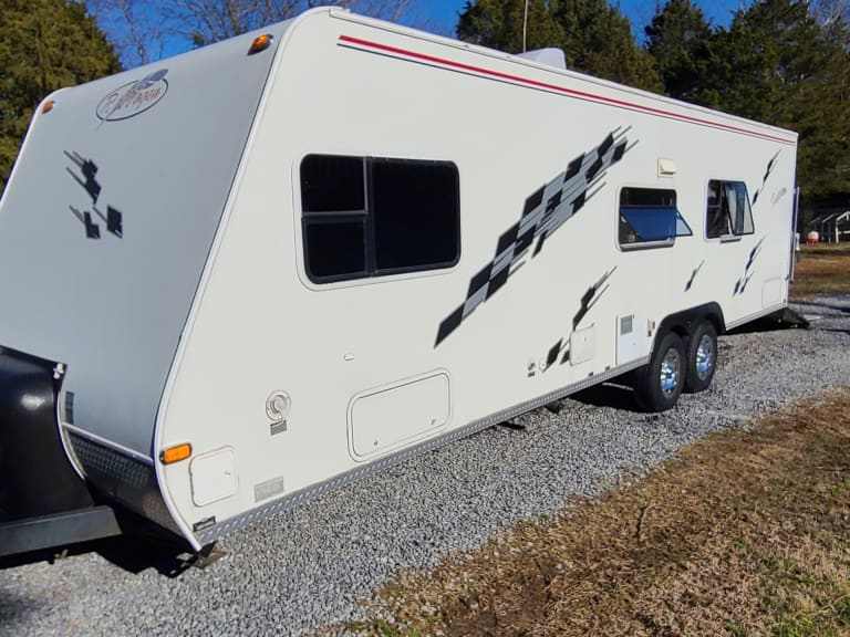 This camper is perfect for any family wanting to get away for a camping trip in Southern Illinois. We can deliver and set it up/take it down. Plenty of room for kids and toys, be it dirt bikes, four wheeler, or beach toys. The camper is fully stocked with clean linens and all the cookware, utensils, and amenities your family could need for a great weekend. Hot dog sticks, pancake griddle, camp chairs, everything you need is included. Plenty of board games, toys, and of course corn hole are already packed.