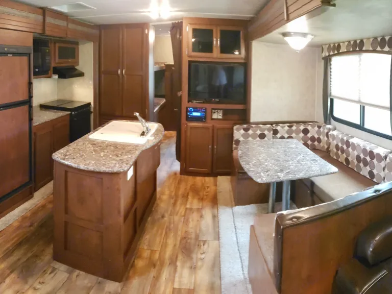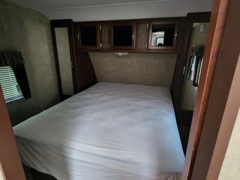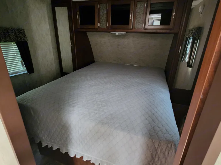 **Note: This camper is only rented to those camping in Kansas at the Marion County Lake or the Marion Reservoir Lake**Our beauty is a Keystone Ultra Lite Grand Touring travel trailer. This is a beautiful camper that is extra roomy since it has 3 slides! Sleeps up to 10 people. The Huge bunkhouse alone sleeps 6. The fold out couch in the bunkhouse folds out into a king size sleeping cushion that is very thick and not the normal very thin mats. The couch in the main living area can also fold out. We DO NOT want the dinette set to be torn down to be used for sleeping. There is a brand new Serta mattress in the master bedroom. The kitchen is beautiful, and it has a kitchen island, along with a large U-Shaped table. There is a small outdoor kitchen, and outdoor shower that is simply a handheld unit. There's a small fridge in the outdoor kitchen also for more accessibility so one doesn't have to go all the way into camper for a nice cold beer or soda. There is no grill available in the outdoor kitchen. Camper awnings are one of the most common things broken during camper rentals, so there is a hefty deposit add-on fee if you desire to use the awning. Unless that add-on fee is selected the awning fuse will be removed. We will put up a pop up tent free of charge to be used in place of the awning. We have the camper located in Marion County, and we would have it SET UP FOR YOU AND Ready FOR Camping if you desire to camp at the Marion County Lake. At this county lake, boats cannot go over wake speed unless you are a Marion County resident. We can also set it up for you at the Marion Reservoir. **The Marion County Lake and Marion Reservoir are the only 2 lakes we are allowing our camper to be rented this summer.**
