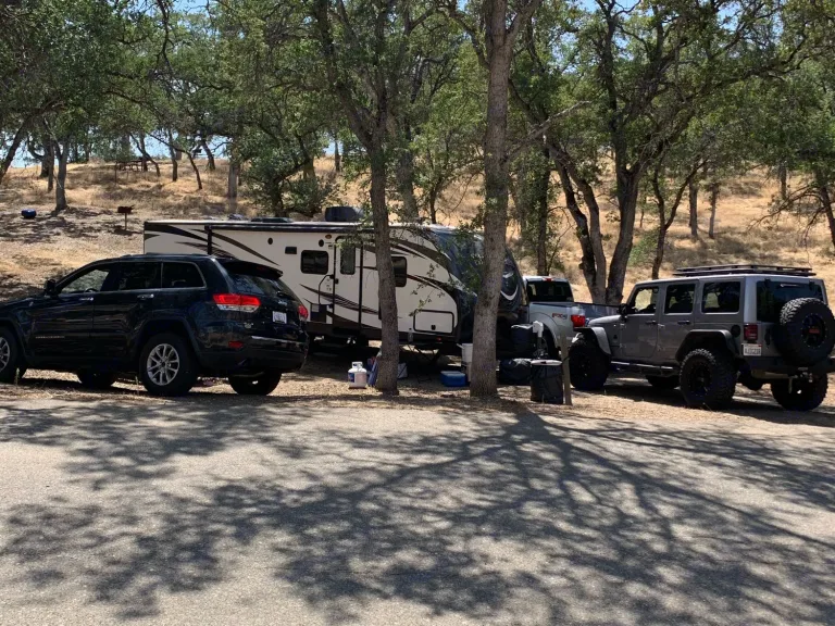 Trailer camping at Lake McClure! Trailer has 2 pop outs. One in the back that pulls out bunk beds. One in the middle that makes more room for the kitchen and table areas.Set up will be done by me before arrival. Trailer can be stocked with certain items upon request.Text or call about booking and special requests!