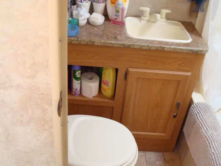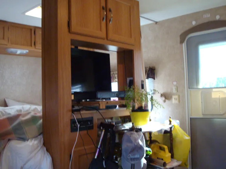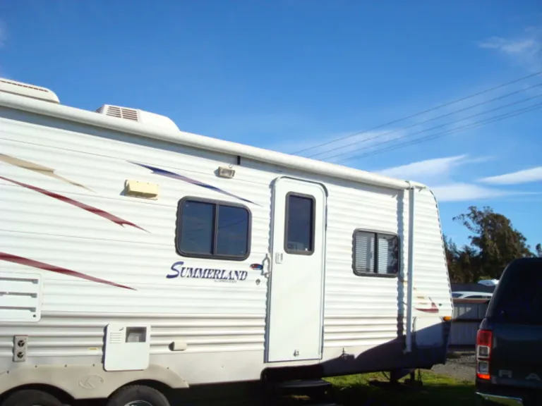 Large storage of fresh water grey water and black water [over 100litres each ]permanent toilet .shower over bath .washing machine ,dishwasher ,3 ring gas stove and oven ,full size fridge freezer,gas hot water heater ,central heating gas, solar power with battery backup for lights and tv,230 volt microwave ,slide out for living area ,permanent double bed [walkround] ,backing camera ,electric brakes ,outside shower as well as inside ,Awning