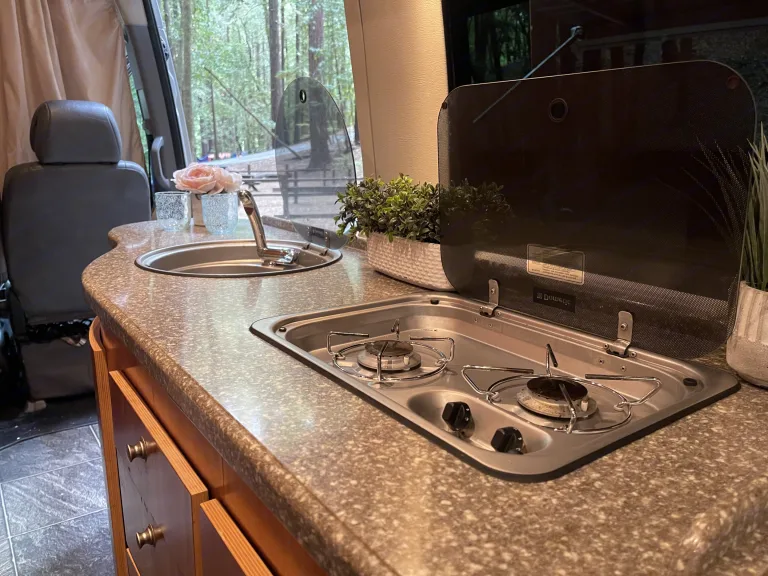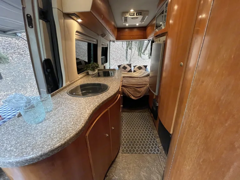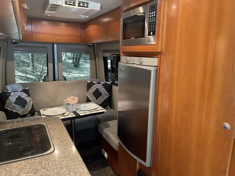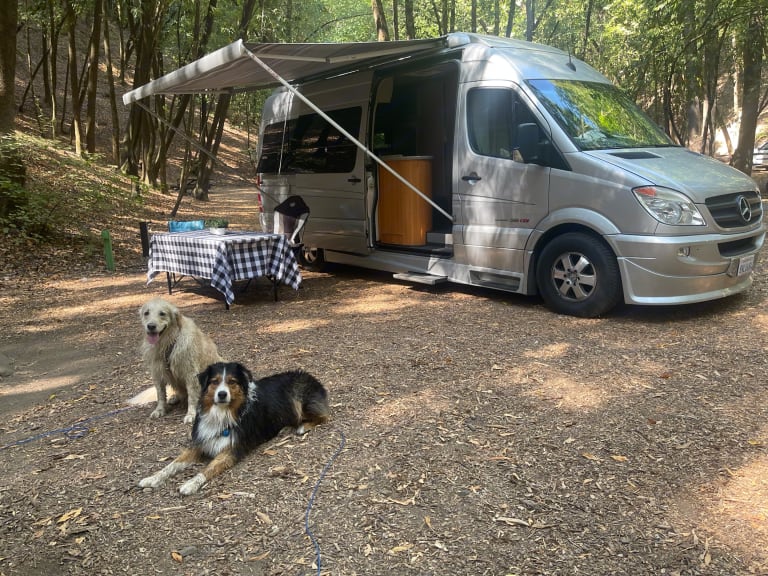 Our rig is a 2009 Mercedes-Benz Sprinter van, perfect for your next outdoor adventure or road trip. Featuring a custom, professional conversion fully equipped with a queen-sized bed, refridgerator, kitchen sink, toilet, bathroom sink, shower (indoor and outdoor), propane flame stove, microwave, A/C, ventilation fan, DVD/TV, and more.It's packed with high-end components. Furnace/water heater system, generator, and solid wood cabinetry. This diesel van is a breeze to drive, gets great gas mileage, and is pet friendly. All the bells and whistles for maximum comfort while you're on the road!We can provide linens/blankets upon request. Otherwise please bring your own! Pillows not included.What's includedCamping chairs (2) - upon request only