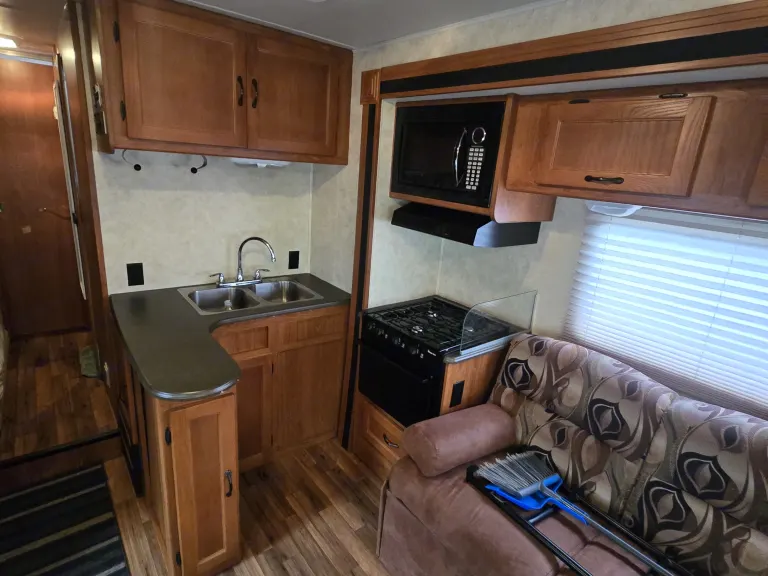 Cozy living area with sofa, booth dinette, overhead storage, and entertainment hookups (TVs often included or ready for your setup).Key Specs & Conveniences:Length: 32 ft 5 in | Slides: 2 | Gvwr: 14,500 lbs