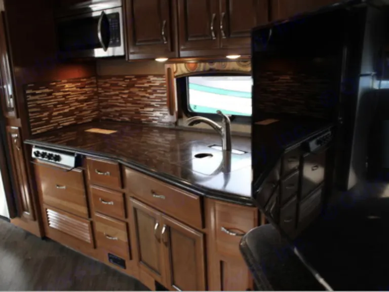 This awesome Class A motorhome provides TWO (2) Full Bathrooms, a King-Size BED, a Bunkhouse, and a Residential Refrigerator! That's only the beginning.