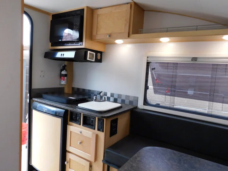 solar electric, roof top A/c "when plugged into shore power" microwave oven, 2 -burner cook top, 3-way refrigerator freezer, gas heat, flat screen tv with /Roku and blue ray DVD player, shower, cartridge toilet, hot and cold running water, 22-gallon grey tank and 11-gallon water tank, And retractable awning.