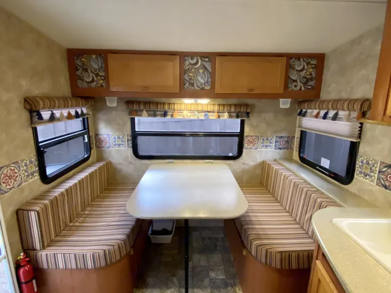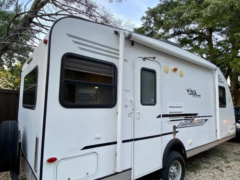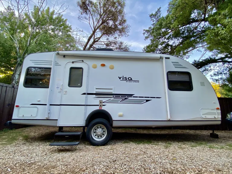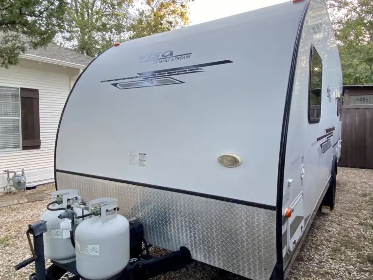Our updated Gulf Stream with a chic interior feel will serve you with all the amenities you love while camping with the ones you love! An upgraded walk around queen mattress, full baths, sink, stove, microwave, ventilation, refrigerator, freezer, hot water, heater, Roku TV's and an interior divider to split the bedroom from the front dinette conversion if you are traveling with friends or family.This GulfStream is unsurpassed in weight, length, and strength ratios for minivans and crossover tow vehicles. Its unique profile decreases wind drag while providing great interior head room! Dry weight is 2800lbs! What's includedWe will provide two rocking foldable camp chair as well as a clean set of linens on the queen bed. RecommendationsWe recommend a weekend trip to Broken Bow, Oklahoma or anywhere in the Texas Hill Country for fun family memories! Other things to noteNo festivals.