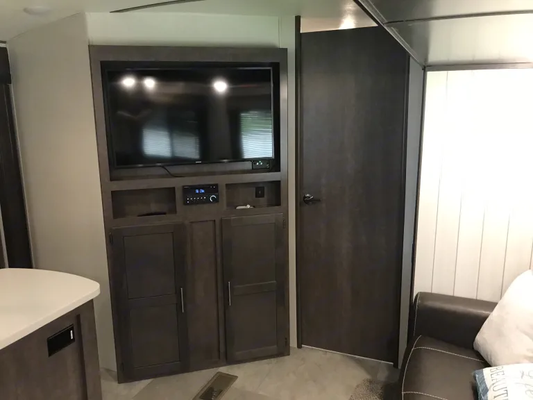 Glamping or Hunting? You Choose! Brand new, dual entry, spacious 2018 model with 1.5 bath, kitchen island, stainless steel appliances, outdoor kitchen (with beer fridge, double burner and gas grill!), two 40 inch TVs, private bunkhouse with 1/2 bath and separate entry, 3 slide outs, plenty of storage and pet friendly! Kitchen basics included (dishes, silverware, pots/pans, cups, coffee maker, toaster, etc.). Everything you need for fun! BYO linens and pillows.50 amp hookup required. Towing vehicle must be 3/4 ton truck (F250, Dodge/Chevy 2500) and have trailer brake.