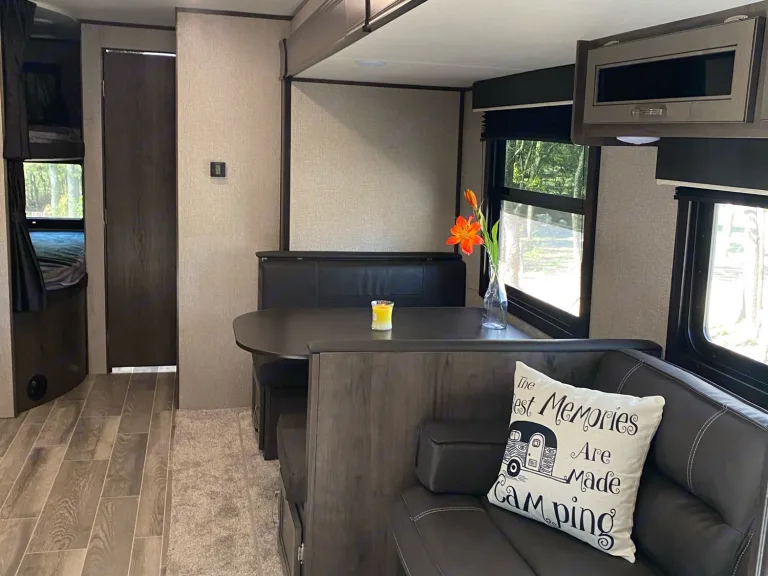 Also included in your rental is a huge outdoor rug, small table for games, games, a keurig with coffee pods, paper plates and plastic ware and 2 rolls of rv/ marine toilet paper.