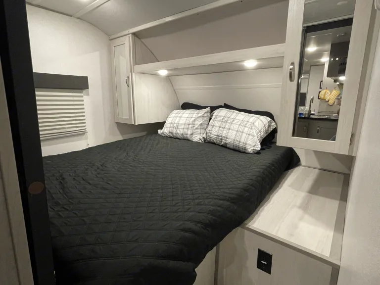 Dolly is a 2021 Primetime Tracer 31BHD bunkhouse pull behind travel trailer. At 34 ft long with 2 slides, this brand new travel trailer can sleep 8 to 9 people. You will find a large U-dinette, pull out sofa, gas stove with oven, microwave, large fridge with freezer and much more! Just added - 2nd AC unit to keep the bunkhouse cool and comfortable.The bunkhouse comes equipped with a slide that creates lots of space with storage to comfortably sleep 4 with privacy. The large U-dinette converts to another sleeping area and the pull out sofa sleeps another 1 to 2 people (depending on age/size). The master suite has two sliding privacy doors with a queen size bed and two spacious cabinets to store clothing. Dolly has a full size shower with sliding glass doors in the rear of the trailer. With the four bunk beds, convertible dinette, convertible couch, and queen size bed in the master you will find plenty of comfort when it’s time to rest!Outside you will find a beautiful power awning equipped with built in speakers for fun in the shade and LED lights to light up your nights! The outdoor kitchen has a gas burner stove and mini-fridge and there's an outdoor shower for cleaning off at the end of the day before heading inside.Dolly can be Delivered and SET UP at your camping destination or you can pick her up and hit the road yourself....YOU choose!Trailer Specs