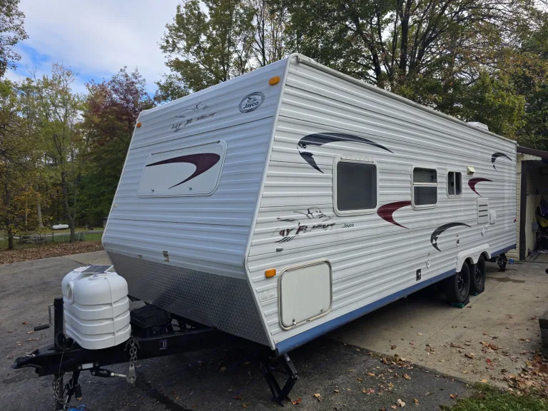 27 foot bunk house travel trailer. Inside is clean. New tires. What's included• Toilet paper